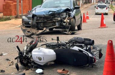 Uma colisão entre um carro e uma motocicleta deixou a motociclista Seliane Oliveira Plácido, de 43 anos, gravemente na manhã deste sábado, 14, no cruzamento