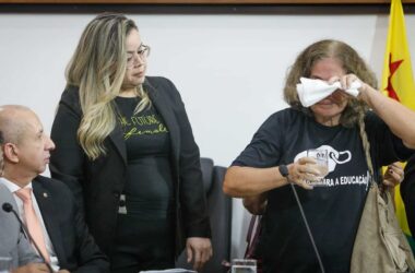 Com auditório lotado de autoridades durante sessão solene em homenagem ao Dia do Professor, a servidora aposentada Rosângela Castro, representante do movimento *Cabeças Brancas” da