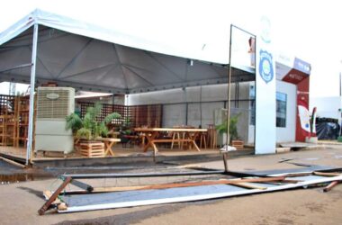 No início da tarde desta sexta-feira, 4, um forte temporal acabou destelhando vários locais dentro na Expoacre dentro do Parque de Exposições Wildy Viana, em