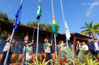 A solenidade do hasteamento da bandeira no Parque de Exposições Wildy Viana, marcou na manhã deste sábado, 29, a abertura oficial da Expoacre 2023, a