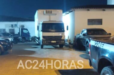 Um caminhão frigorífico foi estacionado no pátio da Instituto de Criminalística da Polícia Civil, na avenida Antônio da Rocha Viana, no bairro Bosque, na noite