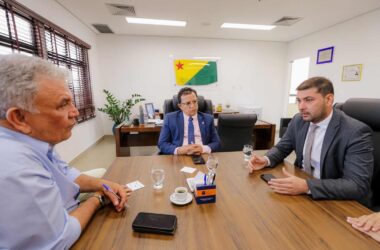 O presidente Luiz Gonzaga e o primeiro-secretario Nicolau Junior, receberam a visita oficial do senador Sérgio Petecao (PSD), na Assembleia Legislativa na manhã desta quarta-feira