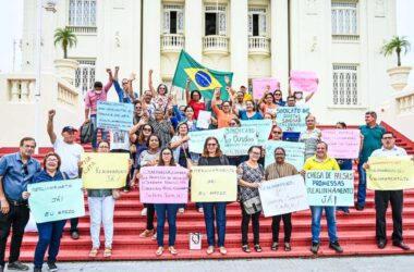 Dezenas de servidores da Administração Direta do Estado do Acre estão protestando na manhã desta terça-feira, 30, em frente ao Palácio Rio Branco e na