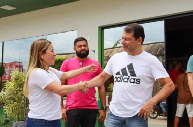 A prefeita Fernanda Hassem, acompanhada do médico Israel Milani, recebeu nesta quinta-feira, 6, o deputado federal Roberto Duarte, juntamente com o vereador de Capixaba, Amilton