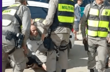 Um vídeo que circulou nas redes sociais neste sábado, 1 de abril, mostra um homem sendo imobilizado por policiais no Parque de Exposições Wildy Viana,