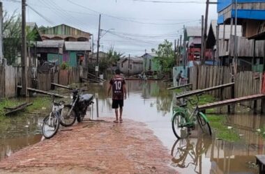 O Rio Tarauacá, que corta a cidade de mesmo nome no Acre, ultrapassou a cota de transbordamento durante o final de semana. De acordo com