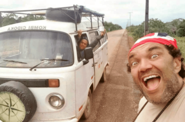 O casal de aventureiros Ghaidy Souza e Marcio Assis, que acompanhados do cachorro Paçoca cruzam o Brasil a bordo de uma Kombi, foram surpreendidos pelos