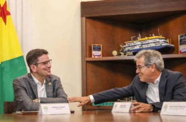 O governador Gladson Cameli recebeu o presidente da Agência Brasileira de Promoção de Exportações e Investimentos, Jorge Viana, na tarde desta segunda-feira, 16, no Palácio