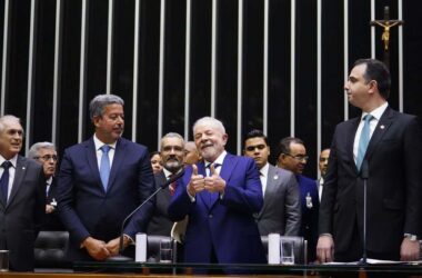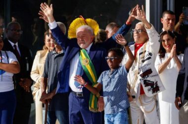 Adriano Machado/Reuters O presidente Luiz Inácio Lula da Silva (PT) recebeu a faixa presidencial do “povo brasileiro”, simbolizado nas figuras de uma criança, de um