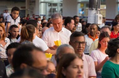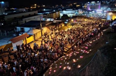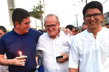 Com uma vela acesa na mão, o governador Gladson Cameli participou da Procissão de Nossa Senhora da Glória em Cruzeiro do Sul nesta segunda-feira, 15,
