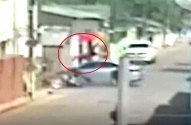 Uma colisão entre um carro e uma moto deixou a motociclista Lídia Feitosa Vieira Chalub, de 44 anos, gravemente ferida no final da manhã deste