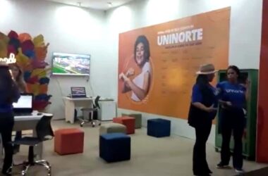 O estande montado pelo Centro Universitário do Norte (Uninorte) no Parque de Exposições Wildy Viana, em Rio Branco, recebe o público para apresentar os novos
