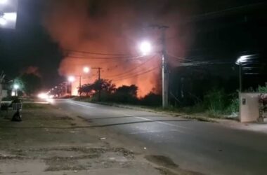 Um incêndio de grandes proporções atingiu uma área de mata na madrugada desta segunda-feira, 1°, na Rua Manaus, situada no bairro Parque das Palmeiras, em