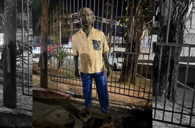 A estátua de Chico Mendes na Praça Povos da Floresta foi vandalizada e segue jogada ao chão faz já três dias. Com ela estamos todos