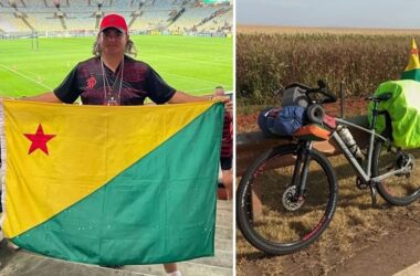 O acreano Reginaldo Dantas, de 45 anos, percorreu mais de 4 mil km de bicicleta, de Rio Branco até o Rio de Janeiro, para assistir