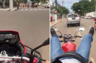 Na manhã de terça-feira, 31, um momento de descuido no trânsito quase terminou em tragédia. Isso porque duas motos – uma de grande porte, acabaram