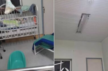 Nesta quarta-feira, 1°, uma forte chuva que atingiu a capital acreana no início da noite, ocasionou um buraco no forro da unidade hospitalar e inundou