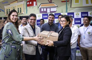 O governador Gladson Cameli, Progressistas, realizou na manhã desta segunda-feira, 16, a entrega de 607 computadores e demais equipamentos de informática para atender diversas unidades