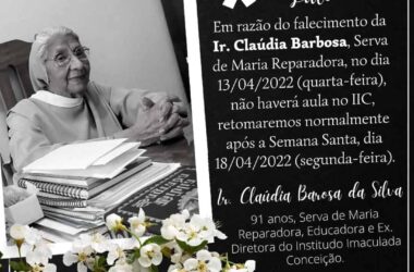 Uma das mais conhecidas irmãs da Congregação das Servas de Maria Reparadora, Claúdia Barbosa, faleceu na manhã desta terça-feira, 12, de causas naturais em Rio