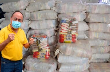 O prefeito Tião Bocalom participou do ato de entrega de sacolões na garagem da concessionária São Judas Tadeu, que está sob intervenção do município, onde
