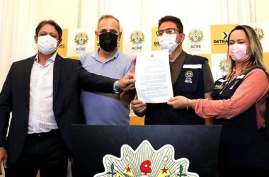 O governador Gladson Cameli (Progressistas) realizou em solenidade no Palácio Rio Branco no fim da manhã desta segunda-feira, 23, a assinatura do Decreto do Programa