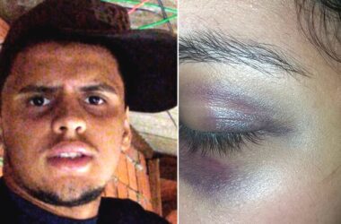 Usando um capacete, o eletricista Gabriel Thomas agrediu covardemente a companheira de 20 anos e não satisfeito, ainda chutou o rosto da vítima várias vezes,