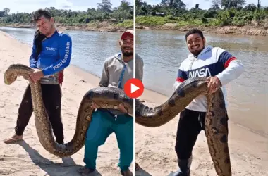 Pescadores da região do segundo distrito de Porto Walter, no interior do Acre, se depararam com uma sucuri de aproximadamente 6 metros durante uma pescaria