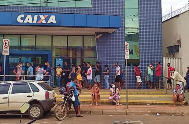 Na manhã desta quarta-feira, 17, as agências da Caixa Econômica Federal registram longas filas e aglomerações em meio a pandemia do Covid-19 para buscarem efetuar