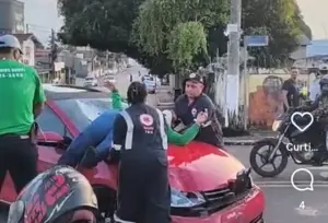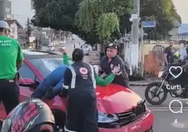 Um acidente inusitado registrado na manhã desta sexta-feira (12), em Rio Branco, acabou deixando um motociclista caído sobre o capô de um carro após uma