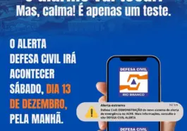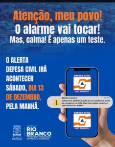 A Defesa Civil de Rio Branco vai realizar, na manhã deste sábado, 13 de dezembro, um teste do sistema de alerta de emergência da capital,