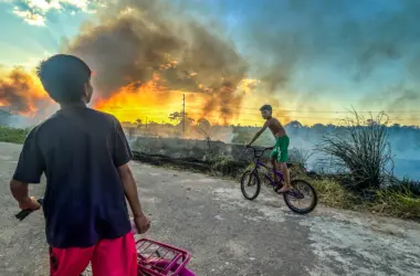 Um incêndio de grandes proporções atinge um terreno com mata na tarde desta sexta-feira (11), no bairro Jequitibá, em Rio Branco, nas proximidades da Cidade