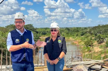 O governador Gladson Cameli e a presidente do Deracre, Sula Ximenes, vistoriaram nesta sexta-feira, 11, as obras da Ponte da Sibéria e da Estrada da