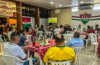 Foto: Whidy Melo/ac24horas Centenas de torcedores do Fluminense se reuniram, na tarde desta terça-feira (8), em um bar temático de Rio Branco, para acompanhar a