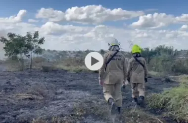 O Corpo de Bombeiros do Acre segue atuando no combate a um incêndio que atingiu uma área de vegetação na parte alta de Rio Branco,