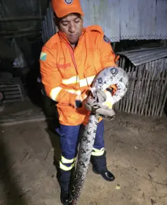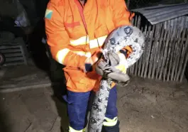 Uma cobra de um metro e meio que já havia comido duas galinhas foi capturada pelo Corpo de Bombeiros dentro do galinheiro no quintal de