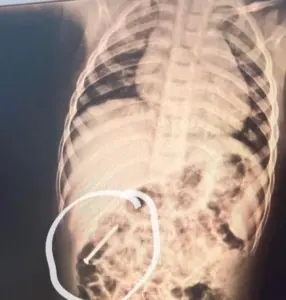 Um menino de 3 anos está internado no Hospital do Juruá, em Cruzeiro do Sul, desde quarta-feira (14), após engolir um prego que ficou alojado