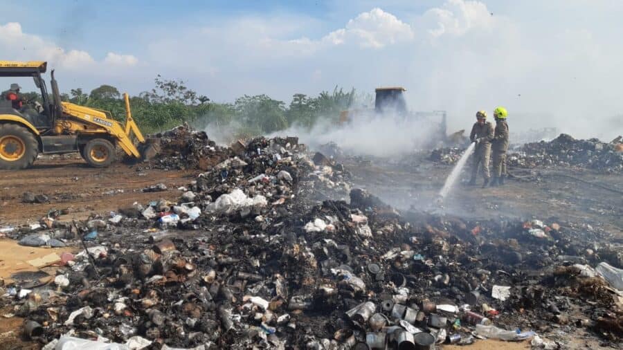Lixão de Mâncio Lima pega fogo e bombeiros tentam controlar chamas