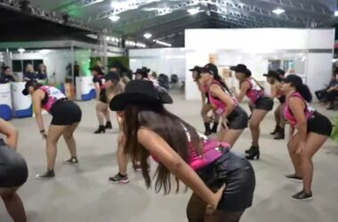 O grupo da Terceira Idade do Serviço Social do Comércio- Sesc, apresentou nesta segunda-feira, 31, na Expoacre, uma quadrilha junina. Vestidos a caráter e dançando