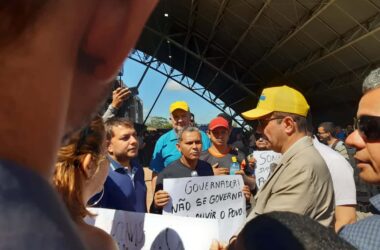 Os presidentes de Associações de Moradores de Bairros liderados pela União Municipal das Associações de Moradores de Cruzeiro do Sul – UMAM- com cartazes na