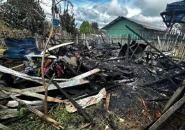 Um incêndio destruiu uma residência e tudo que havia dentro do imóvel na rua do Muru, bairro João Alves, em Cruzeiro do Sul, na madrugada
