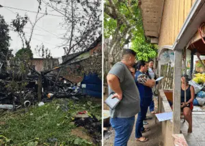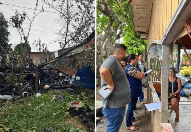 Andressa Mendonça, de 34 anos, que teve sua residência completamente destruída por um incêndio na madrugada desta quarta-feira, 5, recebeu da Prefeitura de Cruzeiro do