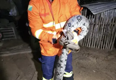 Uma cobra de um metro e meio que já havia comido duas galinhas foi capturada pelo Corpo de Bombeiros dentro do galinheiro no quintal de