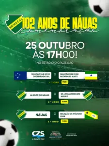 Os 102 anos do Náuas Esporte Clube serão comemorados neste sábado, 25, a partir das 17h, no estádio O Cruzeirão com três partidas de futebol.