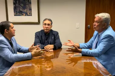 O senador Sérgio Petecão (PSD-AC) recebeu, nesta quarta-feira (13), em seu gabinete, o prefeito do município de Rodrigues Alves, Salatiel Magalhães, e o superintendente do