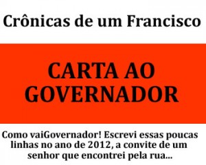 Como vai Governador! Escrevi essas poucas linhas no ano de 2012, a convite de um senhor que encontrei pela rua. Eu sei, eu sei, são