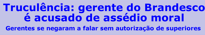 O gerente do banco Bradesco, agência central de Rio Branco está sendo acusado de assédio moral aos funcionários da instituição, pela diretoria do Sindicato dos