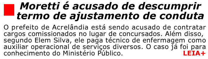 O prefeito Clovis Moretti, do município de Acrelândia, localizado a cerca de 100 km da capital, está descumprindo um termo de ajustamento de conduta feito