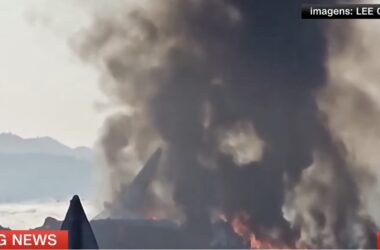 Uma aeronave transportando 181 pessoas – 175 passageiros e seis tripulantes – saiu da pista e colidiu contra um muro no Aeroporto Internacional de Muan,
