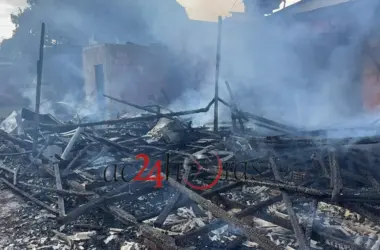 Um incêndio destruiu por completo uma casa de madeira na Rua Montevidéu, no Bairro João Eduardo I, região da Baixada da Sobral, em Rio Branco,