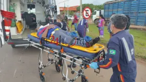 Um acidente de trânsito envolvendo uma motocicleta e uma bicicleta deixou o idoso Lourival de Jesus, de 75 anos, ferido, e Leidson da Silva do